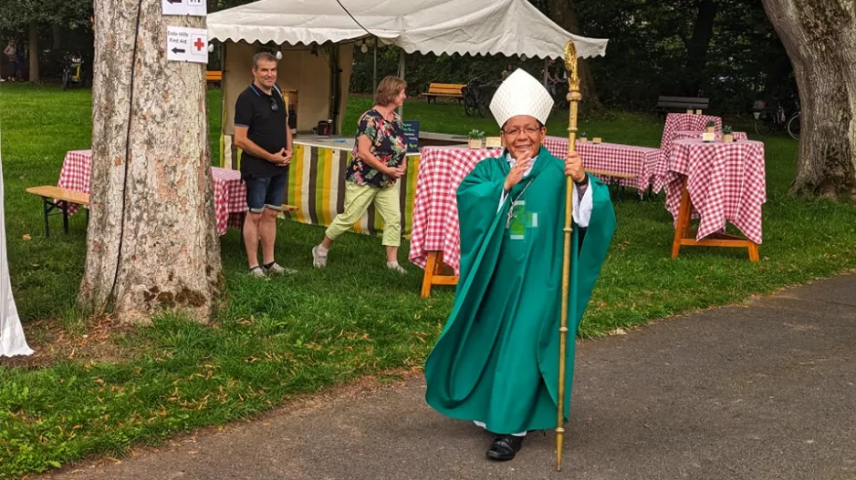 Klosterparkfest Hünfeld: Am Sonntag, 20. August war wieder das Klosterparkfest im Bonifatiuskloster. Bei diesem Missionsfest steht jedes Jahr ein Missionsland im Mittelpunkt. In diesem Jahr war es Peru. Unser Mitbruder Weihbischof Alberto Huamán OMI aus Huancayo (Peru), war extra angereist. Auch die Oblatinnen waren mit ihrer Generaloberin Raquel Toro Gil OMI vertreten, die kurz zuvor ihre Niederlassung in Peru besucht hatte. Natürlich waren auch unsere Oblatinnen aus Ramsdorf da. Sie und der Bischof machten auf die Situation und die oblatische Mission aufmerksam. Der Erlös des Klosterparkfestes belief sich auf 24.000 Euro. Er kommt einer Schule und der Neugründung der Oblatinnen in Peru zugute. Die Mission der Schwestern, die Anfang des Jahres 2023 in Bambamarca (Nordwest-Peru) gegründet wurde, ist die erste Niederlassung der Gemeinschaft außerhalb Europas. +++