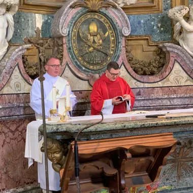 Am zweiten Tag standen die großen Basiliken Roms auf dem Programm: Nach der Eucharistiefeier am frühen Morgen in den Katakomben des Petersdoms besuchten die Männer auch die anderen päpstlichen Basiliken: Santa Maria Maggiore, San Giovanni in Laterano und Sankt Paul vor den Mauern. Am Grab des Heiligen Paulus wurde dabei aus voller Kehle gesungen und gebetet. Der Besuch eines römischen Restaurants am Abend durfte auch nicht fehlen.